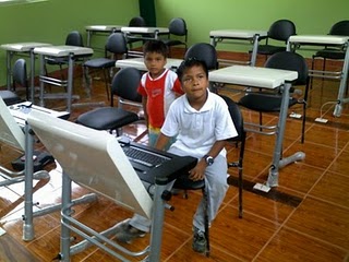 O modelo das carteiras escolhido para este projeto foi o Desk One Dobrável. Esta carteira possui um Thin Client (garantindo economia de energia) e pode ser usada, quando dobrada, como uma carteira escolar comum. Para Marcio Rossatto, gerente do projeto, a escolha deste modelo se deu pela possibilidade de redução do tamanho das carteiras, o que facilita e reduz o custo do transporte dos equipamentos. Cerca de trinta estudantes terão acesso a inclusão digital inteligente. A ideia, agora, é expandir o projeto para Colômbia, Peru e Bolívia.
